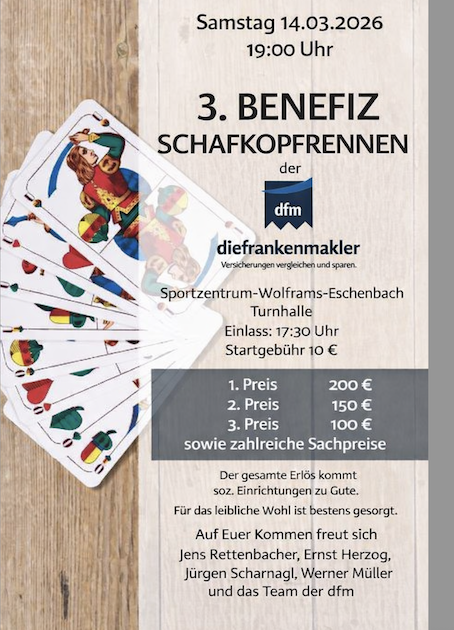 Anlässlich des 50-jährigen Gründungsjubiläums richtet der DJK-SV Oberwiesenacker ein großes Schafkopfrennen aus.