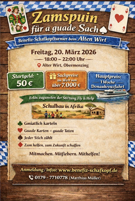 Alles für das Projekt "Schule für Afrika" - 100 % Benefizturnier - Mitspielen, Gewinnen und Gutes tun
