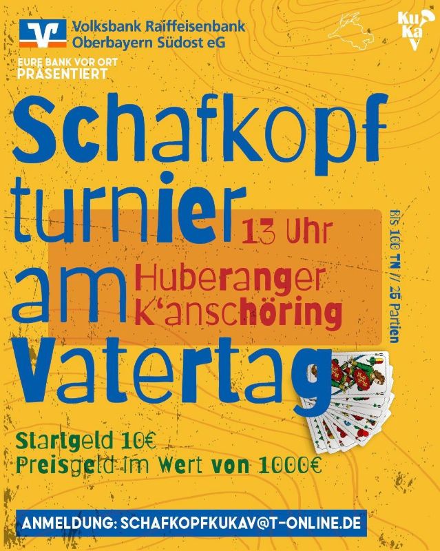 Am 1. Mai 2026 laden wir euch herzlich zum 1. Schafkopfturnier im wiedereröffneten Brauhaus am Kapuzinerplatz 5, 80337 München, ein. Wir wollen das Brauhaus zu einem Ort machen, an dem die Menschen zusammenkommen. Und wie ginge das besser als mit regelmäßigen Schafkopfrunden?